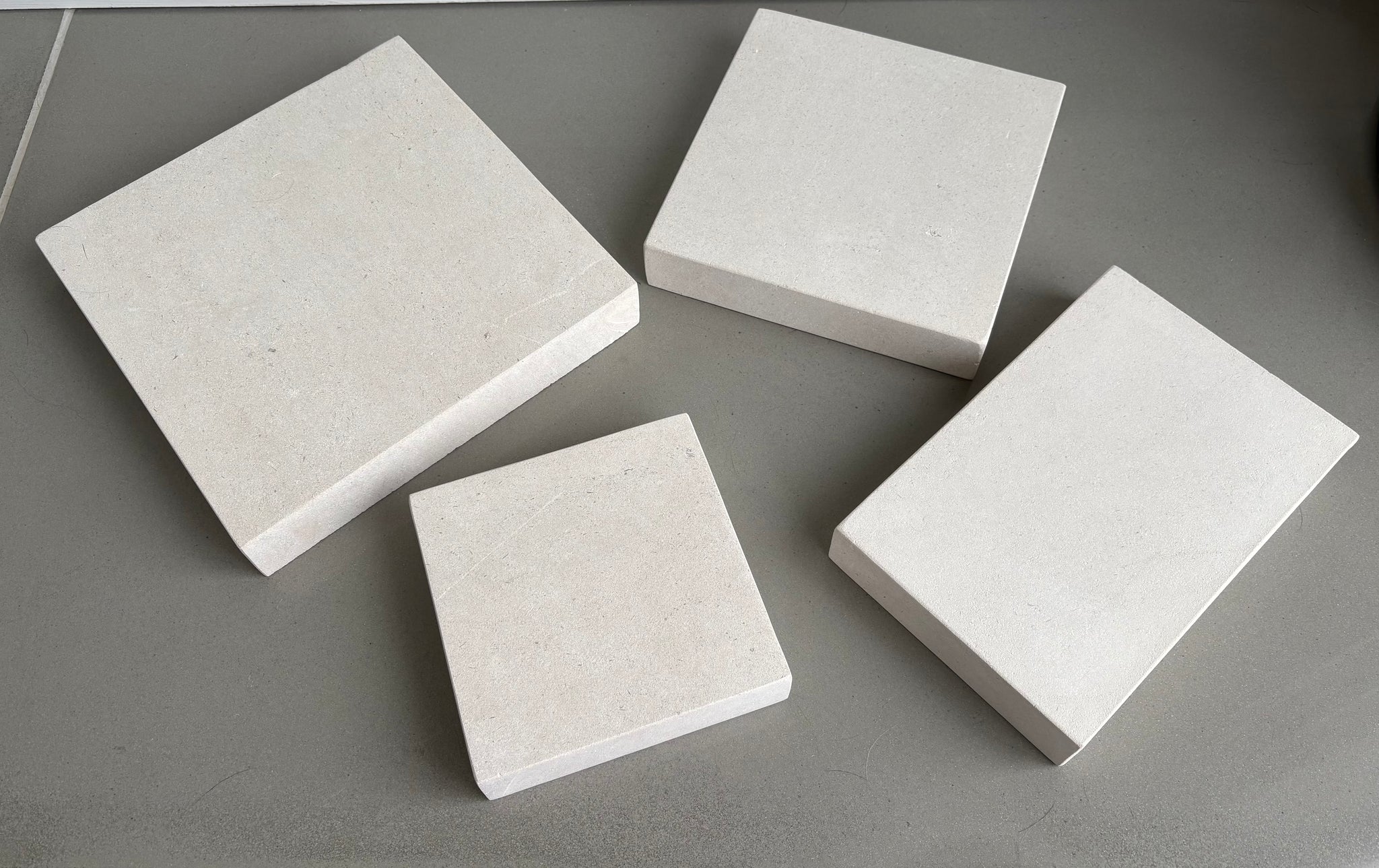 Portland basebed plinths honed and sanded on 5 sides, with chamfered edges.